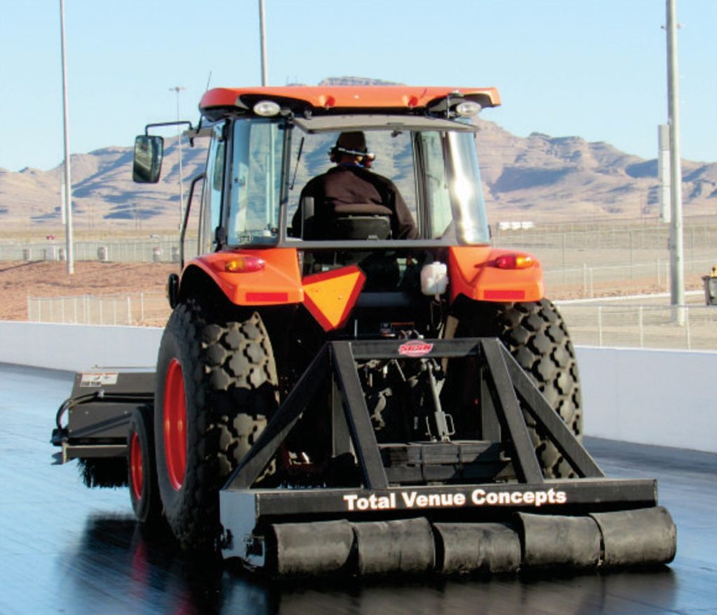 Our scrubbers have broom bristles that are the right texture and stiffness. We have chemical delivery systems that apply the correct cleaning compounds to efficiently and quickly clean up a mess, or maintain your track every week. Weekly maintenance cleaning of your race track will provide a surface that’s able to provide a better traction coefficient and will require less traction compound.